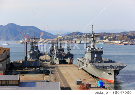 【広島県】晴天の海上自衛隊 呉基地に停泊する輸送艦 おおすみ