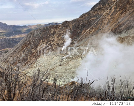 神奈川県箱根町の大涌谷から南側の冠ヶ岳方面を見る