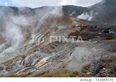 Owakudani valley in Hakone, Kanagawa, Japan.