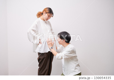 エコー写真を見ながら、赤ちゃんが生まれてくるのが待ち遠しい母と娘