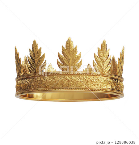 Golden crown with intricate leaf designs symbolizes royalty and elegance. detailed craftsmanship and shiny finish highlight its luxurious and regal appearance