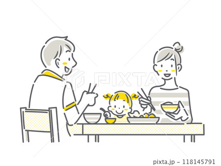 自宅で食事を楽しむ家族 シンプルでお洒落な線画イラスト