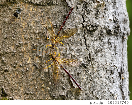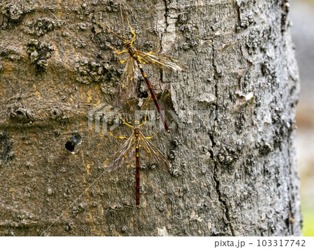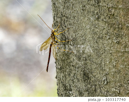 エノキに来たオスのオオホシオナガバチ
