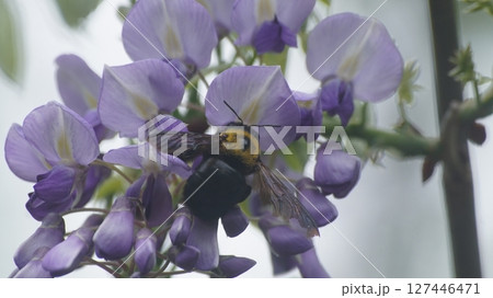 白藤の蜜を吸うキムネクマバチの雄