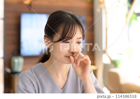 鼻水を垂らして困っている男の子のゆるかわイラスト