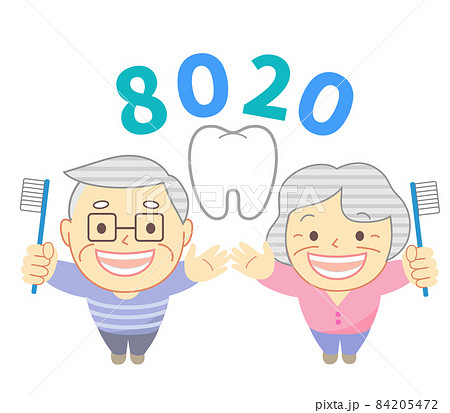 高齢者と歯磨き8020 :歯科イラスト