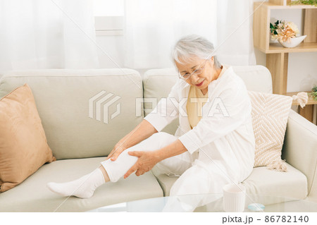 ふくらはぎの脂肪に悩みフットケアする日本人女性