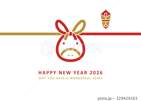 2026年賀状デザイン おしゃれな赤と金の馬の水引風