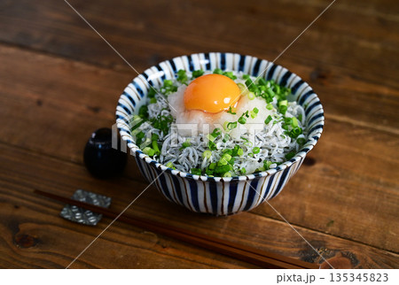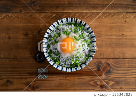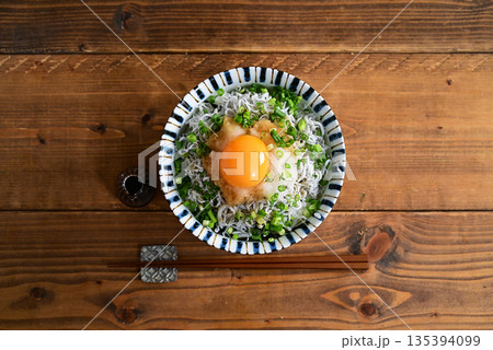 生桜えびと釜揚げしらすの二色丼 生卵のせ