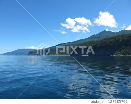 知床観光船おーろらから見た知床硫黄山とクンネポール(こけし岩~岩尾別間)