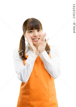 エプロンをした20代女性の白バックイメージ