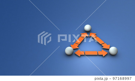 互いに関連づけられた、みっつのグループ。現代の国際社会におけるサプライチェーン。相互依存関。