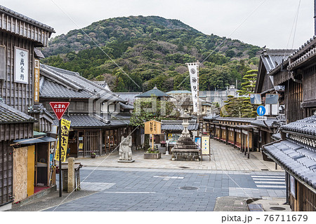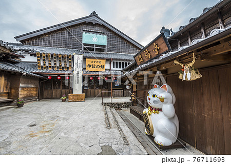 日本 三重県伊勢市のおはらい町にあるおかげ横丁の町並み