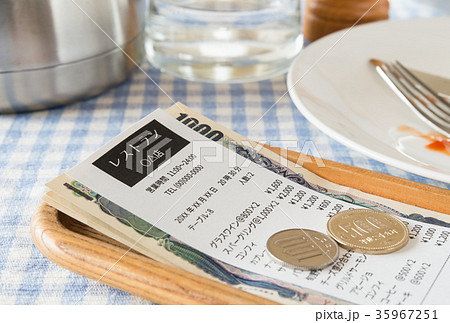 飲食店での会計 レストラン お勘定 支払い 飲食店 家計 外食 レシート 食事