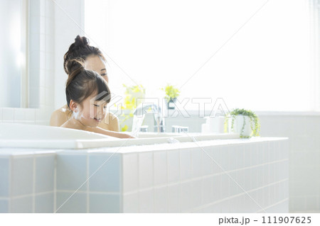 お風呂に入る親子