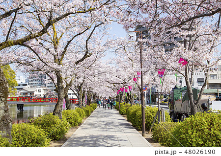 春の小田原城址公園の風景 お堀端通りに咲く満開の桜並木【神奈川県・小田原市】