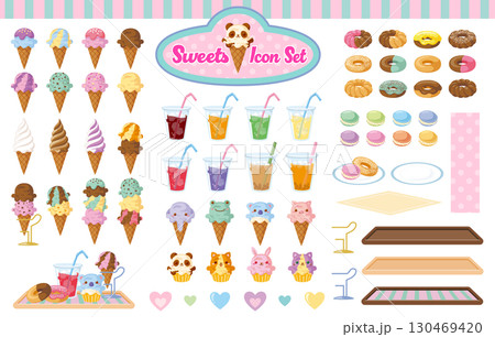 スイーツアイコンセット|アイスクリーム・ドーナツ・マカロン・ドリンク・アニマルスイーツ