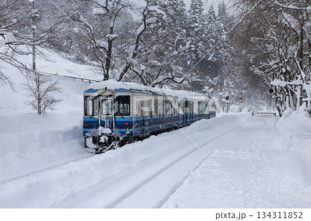 冬の湯野上温泉駅の雪景色