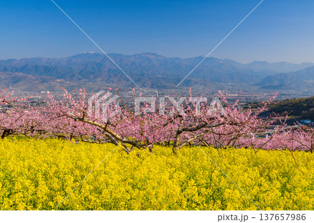 (山梨県)桃源郷 春の甲府盆地とアルプス