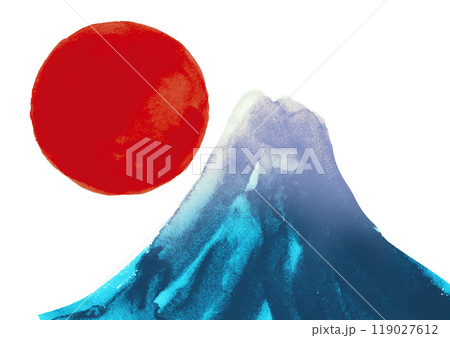 2025年 巳年 年賀状用 初日の出と富士山手書き和風筆イラスト