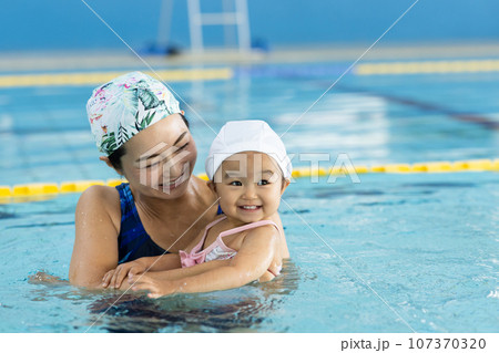 ベイビースイムを楽しむ親子