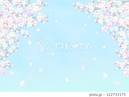 満開の桜と青空の背景イラスト