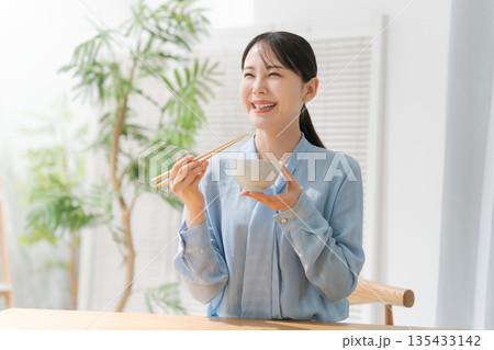 ご飯を食べる女性