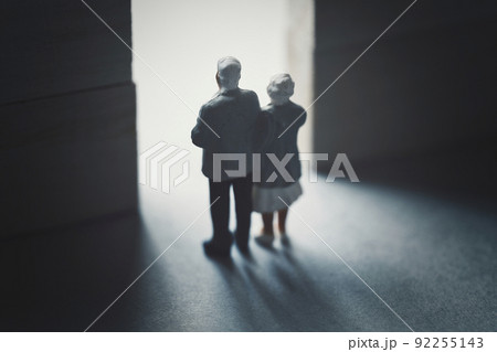 光の扉とシニア夫婦の後ろ姿