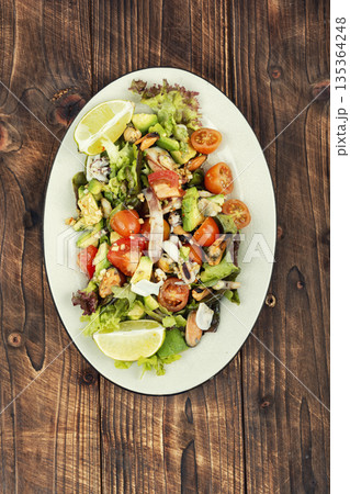 Seafood salad with fresh greens