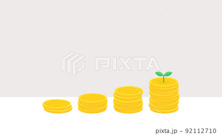 右肩上がりに増えていく積み重なったコイン・硬貨 - お金が増える・貯蓄のイメージの素材