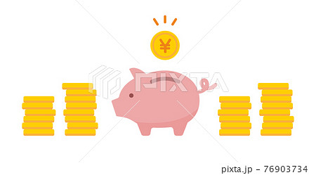 お金とブタの貯金箱のイラスト 貯蓄 貯める 節約 コイン 硬貨