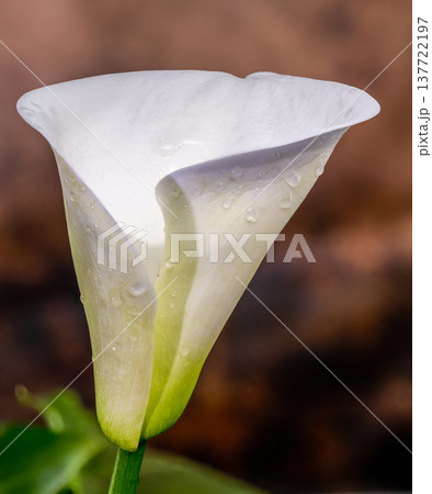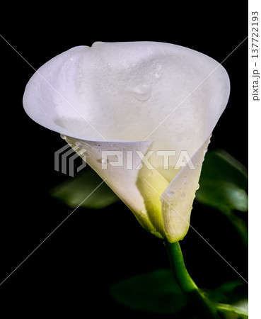 White Calla Lily Flower with Water Droplets Macro Photo