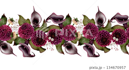 Watercolor dahlia and calla border