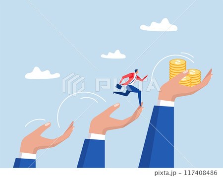 Mentorship to assist employee to success. Helping hand or encouragement for teammate to achieve business goal. Businessman jumping up hand growth ladder to progress target. Business support concept