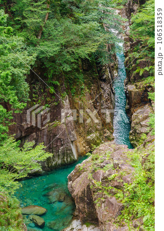 エメラルドグリーンの水面が綺麗な川浦渓谷(岐阜県関市)T字峡