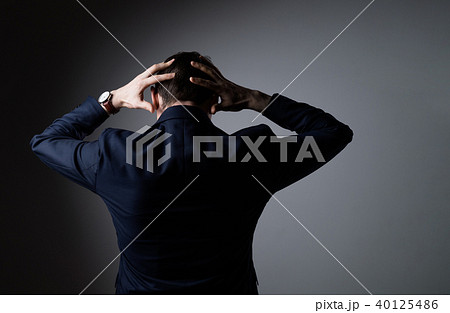 ショックで頭をかかえるスーツ姿の若いビジネスマン