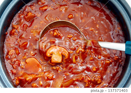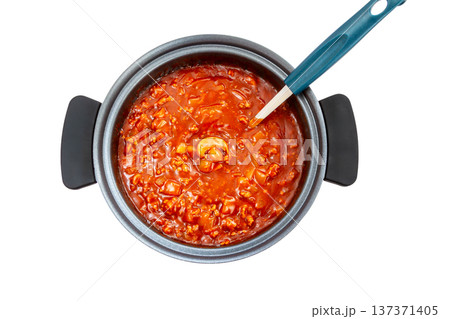 鍋で調理中の手作りミートソース