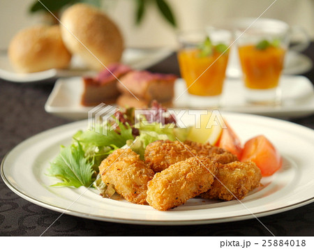 カキフライとデザートのランチ (横位置)