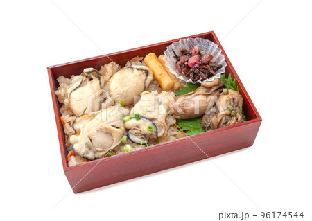 お持ち帰り牡蠣飯のお弁当【白背景・切り抜き】