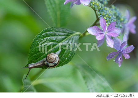 カタツムリと紫陽花 梅雨イメージ