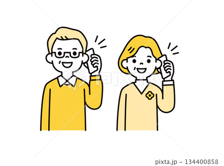 スマートフォンで話す・通話する、おじいさん・おばあさんの上半身ベクターイラスト素材セット