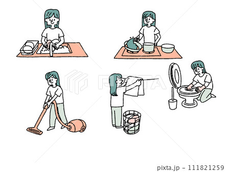 家事をしている主婦のイラストセット