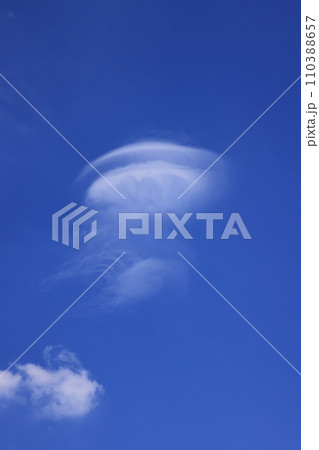 自然 気象 レンズ雲、下から見ると円盤の様な雲。同じ場所で徐々に崩れてゆくようです