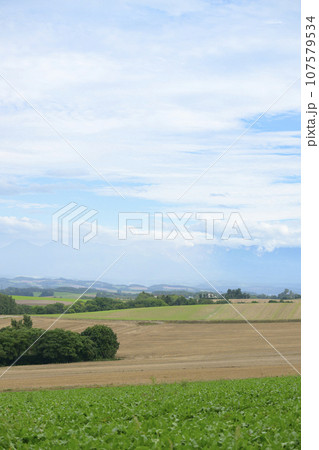 北海道上川郡美瑛町北瑛 かしわ公園付近からの農地と大雪山や十勝岳連峰の景色