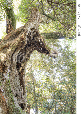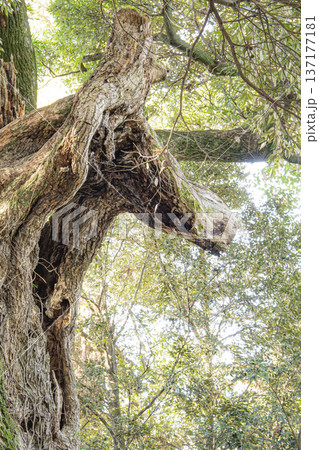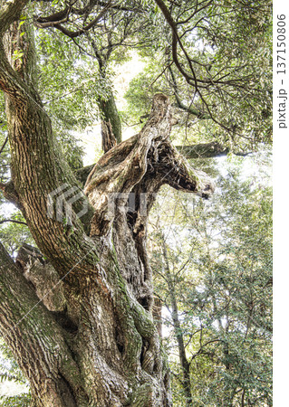 スダジイ巨樹の一部が馬の顔に見える【大杉神社の馬の木」