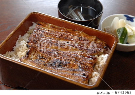 うなぎ丼 鰻重 土用の丑の日にうな重を食べる(お吸い物とお漬物を添えて)スタミナ満点のうなぎ料理