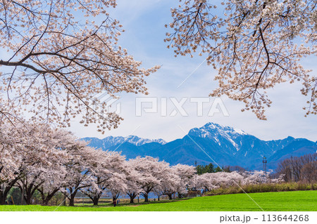 【山梨県】蕪(かぶら)の桜並木と甲斐駒ヶ岳