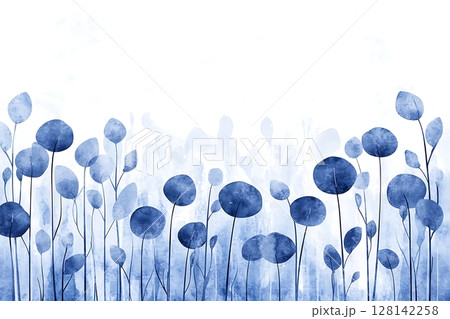Elegant Blue Floral Background with Watercolor Leaves and Light Textures for Designs
