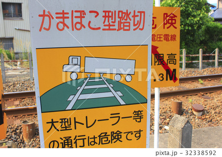 鉄道のかまぼこ型踏切の看板