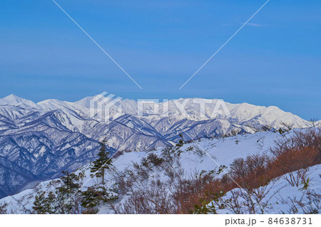 冬の群馬県利根郡 剣ヶ峰山と武尊山の間の稜線から北側の眺望